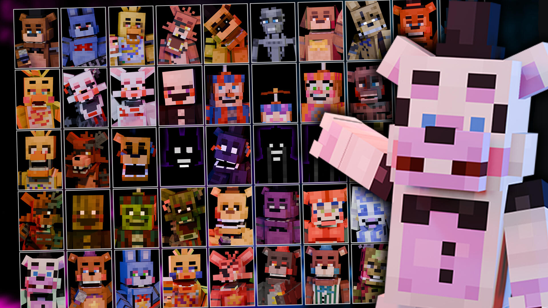 A mod with 150+ animatronics that merges the pizzeria simulator mechanics of Freddy Fazbear's Pizzeria Simulator (FFPS) with Minecraft.